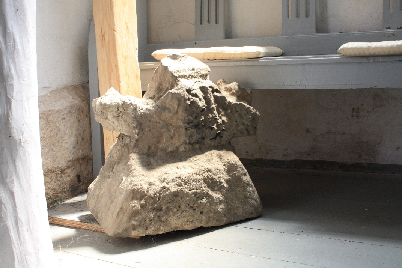 Wir gehen nun zurück auf die Dorfstraße. Linkerhand, noch auf dem Gutsgelände, befindet sich eine Grünfläche mit Nadelgehölzen. Hier stand früher die Brauerei des Gutes. Vor uns sehen wir die Dorfkirche, den nächsten historischen Ort auf unserem Rundgang. Sie ist das älteste Gebäude im Ort. Die ist eine romanische Chorturmkirche mit dem Turm im Osten. Eine genaue Datierung der Gründung liegt nicht vor. Sie entstand in romanischer Zeit in zwei Bauphasen. An einem ursprünglichen Langhaus wurde später der Turm angebaut. Dendrochronologische Untersuchungen der Balken in der Glockenstube ergaben eine Zeit um 1280. Zu unserer geschichtlichen Betrachtung wählen wir einen Standort vor der südlichen Kirchenwand auf dem Friedhof. Von hier lässt sich, ähnlich wie beim Gutshaus, die Baugeschichte am besten erkennen. Wir sehen –zugemauert- den ursprünglichen Eingang und ein romanisches Fenster aus der Gründungszeit. Daneben, ebenfalls zugemauert, ein gotisches Spitzbogenfenster. Die Dendrochronologie datiert den kompletten Dachstuhl des Kirchenschiffes auf die Zeit um 1410. Man kann davon ausgehen, dass hier das romanische Dach um ca. 60 cm angehoben wurde. Ein Grundgedanke der Gotik ist, möglichst viel Licht in den Kirchenraum zu bringen („Gott ist Licht“). Ein Vergleich der Größe der gotischen mit dem romanischen Fenster bestätigt diesen Grundsatz. Ein für die Weischützer Kirche wichtiges Datum ist das Jahr 1481. Hier wurde aus der Filiale der Zeddenbacher Kirche die „Mutter und rechte Pfarre“, also eine Hauptkirche. In der darüber ausgefertigten Urkunde ist u.a. ein Nicolas Krumphols, Erzpriester des Osterbanns, erwähnt. (Der Osterbann ist ein kirchlicher Verwaltungsbezirk im Bistum Halberstadt) Die letzte große Veränderung an der Kirche erfolgte 1804. Auf Veranlassung des bereits erwähnten Freyburger Superintendenten Polycarpus Keil wurden die klassizistischen Fenster eingesetzt und die Inneneinrichtung erneuert. Bevor wir den Innenraum betreten, noch schnell einen Blick zum Turm. An der Südseite fällt eine Mauerkerbe auf. Hier befand sich ein hölzerner Anbau. Diese Räumlichkeit hatte mehrere Funktionen, sie diente als Notunterkunft für Pilger oder auch als Lager für Kirchengerät. Unter dem klassizistischen Fenster im Turm befindet sich -wieder einmal zugemauert- ein Hagioskop. Dieser Mauerdurchbruch, auch Lepraspalte genannt, diente dazu, dass Kranke, die nicht unmittelbar am Gottesdienst teilnehmen durften, das Geschehen am Altar verfolgen konnten. An der Ostseite des Turmes fällt ein rätselhafter Stein mit vier kreisrunden öffnungen auf. Es gibt für seine Deutung verschiedene Theorien, die noch näher untersucht werden müssen.